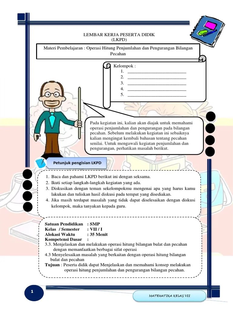 Contoh Lembar Kerja Penjumlahan Dan Pengurangan Bilangan Pecahan / 1 / Lembar kerja peserta didik kelas vii smp 2.